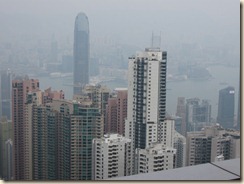 You end up in the Peak Tower which is full of shopping and eating places. At the very top you can pay about HK$25 to go onto the deck at the top level. Given that the weather was pretty hazy I didn’t feel it was worth it so headed outside to look for some other places to take some photos.